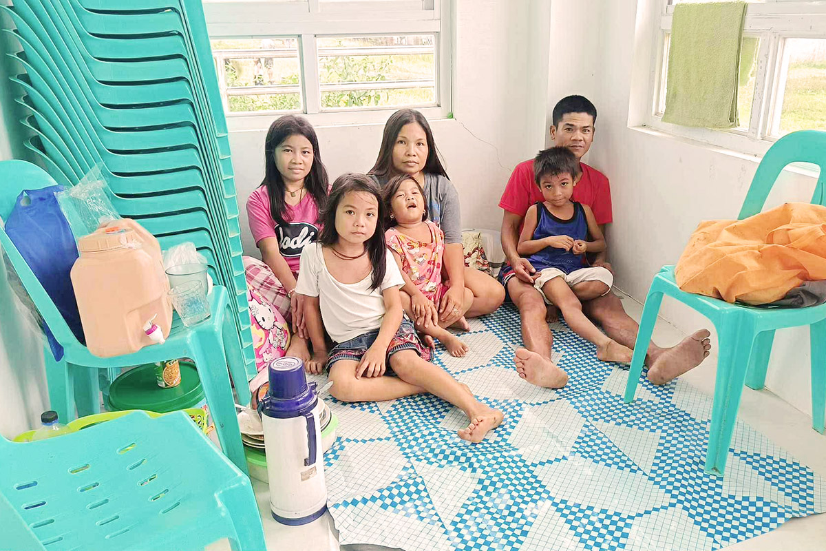 A family from Legazpi takes shelter in a local evacuation center during Typhoon Uwan.